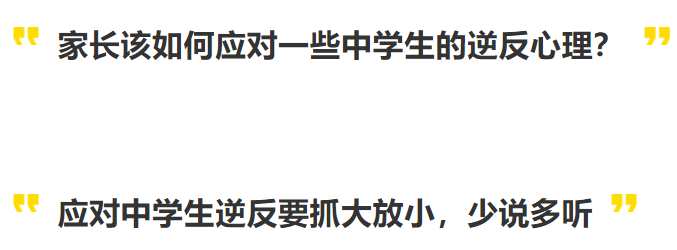 正常的情况下,大多数孩子青春期的逆反都是比较微小的,不会那么激烈。什么样的孩子会在青春期特别逆反呢?就是他小时候的家庭教育是强制式的、非常高压的。如果孩子逆反非常厉害,家长就要思考反省一下,是不是小时候的教育方式、和孩子相处的方式出了问题,到青春期以后是不是需要一些改变。对于中学生的特殊心理阶段,建议家长可以参考以下方面:第一,家长要坚定认识到孩子已经长大了,必须允许他有自己的想法和做法。有这样一句话:世界上所有的爱都是为了在一起,只有一种爱是为了分离,那就是父母对孩子的爱。所以进入青春期以后,作为父母真的要坚定地认识到,孩子已经长大了,他不再是那个牵着你的衣襟,在你面前撒娇,依赖你的小孩子了,父母应该为此感到高兴。第二,要少管,要抓大放小。什么是小呢?很简单,比如吃什么穿什么。为什么进入青春期以后,很多父亲反而跟孩子关系会好一点呢,因为当爸爸的会抓大放小,他觉得很多琐碎的小事不用管了,管大方向就行了,但是妈妈就做不到。第三,不要唠叨,要少说多听。本来这个时期孩子就已经封闭了一部分的情感世界、生活世界,但他还是需要父母的,他还是想跟你交流。但是这个时候你不要刨根问底,他想跟你说,你就认真听。比如今天这个孩子回来了告诉你,“我今天遇到某某老师真的很讨厌,真的太过分了”,孩子刚说到这儿,有的家长就以传统的观点打断他“你不要这样说老师,老师怎么会这么过分...”,本来孩子要告诉你这个老师什么地方过分了,你一打断,他就不想继续说了。第四,坚决地杜绝任何形式的暴力,包括语言暴力、冷暴力等。如果有很严重的暴力情况,哪怕只发生一次,亲子关系就会难以修复。不要觉得孩子会无所谓。第五,要调整好自身的情绪。父母也是人,人都会有情绪。当你看到这个孩子,忍不住要发脾气的时候,请你冷静下来,离开现场,不要再看他,等你出去以后再回来可能就冷静了。夫妻之间也要多沟通,尽量不要因为自己的情绪而对孩子大发脾气。最后我想对父母们说,做父母不容易,做青春期孩子的父母就更不容易了。有的时候不是我们父母的问题,确实是孩子的问题,但是孩子在成长的过程当中,这些问题就是存在,希望家长们都能调整好自己的情绪,陪孩子一起走过激荡的青春期。