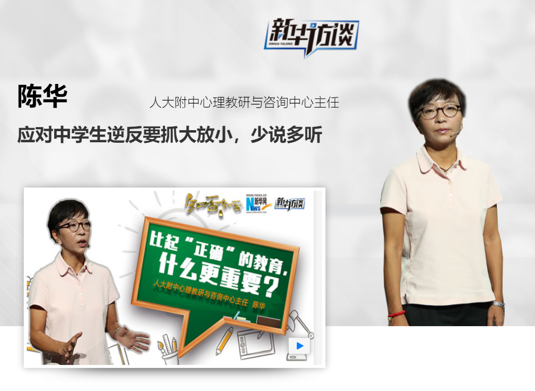 2023-05-22 14:27新华网陈华,人大附中心理教研与咨询中心主任,创新人才教育研究会副会长,创新人才教育研究会振兴县域教育保定心理健康教育指导实验基地特聘主持人。