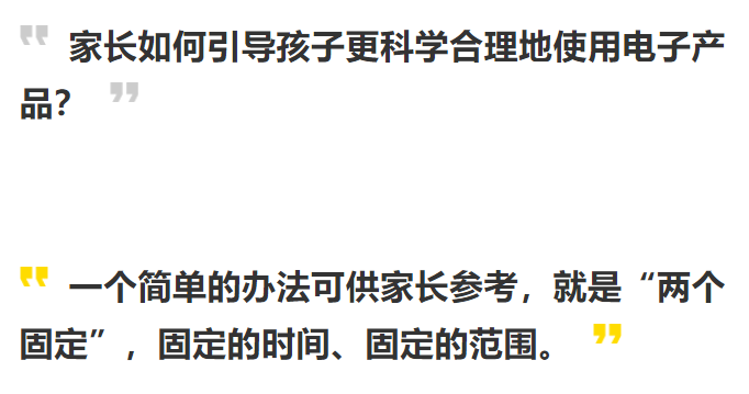 对于该不该给中学生使用电子产品,我在理论上的回答是不该。最近,我遇到好几个案例,孩子因为沉迷于游戏而厌学,整天把自己锁在家里,不出门与人交往,最终处于一个完全自闭的状态。他的学习功能,甚至生活功能都丧失了,这样的情况就非常让人痛心。所以说,防范毒瘾最好的办法就是不要去涉毒,不要去接触毒品。因为很难确定哪个孩子是容易成瘾的,哪个孩子是有很好的自控能力的。所以建议学校可以采取一些强制的办法,学校可以让学生不带电子产品进入课堂。刚才说不能和电子产品接触,这是理论上的,但实际上在现在这样一个时代太难了,何况有些学校布置作业和发通知都是通过手机来进行的。那么,到底该怎么做?有一个简单的办法可供家长参考,就是“两个固定”,固定的时间、固定的范围。固定的时间包括时间点,比如孩子回到家吃完饭之后的那个时间开始,每天半个小时或者一个小时,周末时间长度可以稍微长一些。固定范围就是要固定内容,通过电子产品可以跟同学微信聊一会天,看一些跟学习有关的内容等,这个需要家长要去监控。一开始这“两个固定”就约束好,而且坚定地去执行,孩子养成习惯以后就好办了。还有一点也很重要,就是家长自己要做好表率,有些家长自己都管不住自己,刷淘宝,看各种无聊的花边新闻,这种情况下你想要自己的孩子养成好习惯就要先做好自己。